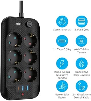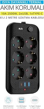 6’lı Priz: Aynı anda birden fazla cihazınızı (bilgisayar, telefon, lamba vb.) bağlayabileceğiniz 6 adet priz bulunmaktadır. 3x USB Girişi: Akıllı telefon, tablet gibi cihazlarınızı şarj etmek için 3 adet USB girişi mevcuttur. Termal Akım Koruması: Aşırı ısınma veya kısa devre durumlarında cihazlarınızı korur ve otomatik olarak elektriği keser. Çocuk Koruması: Çocukların parmaklarını sokarak elektrik çarpmasına maruz kalmalarını engeller. 2 Metre Kablo: Uzun kablosu sayesinde prizi istediğiniz yere taşıyabilir ve kullanım alanınızı genişletebilirsiniz. Kompakt Tasarım: Şık ve dayanıklı tasarımıyla her ortama uyum sağlar.