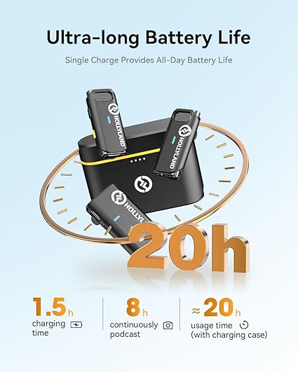 8 saat uzun ömürlü pil – Lark M1 Lavalier kablosuz mikrofon, 1,5 saat boyunca tam şarj olduğunda 8 saate kadar kesintisiz kaydı destekler. Hem verici hem de alıcı mikrofonu, aynı zamanda çalışırken doğrudan şarj için bir USB-C fişine sahiptir – stüdyoda veya açık havada kullanım için mükemmeldir (Vlogs, Streaming, Podcast, video konferansları) ve pil ömrü konusunda endişelenmenize gerek kalmaz