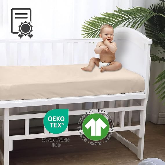 Home%100 Pamuk Penye, Lastikli Full Kenar Bebek Çarşafı – Oeko-tex Sertifikalı, Yumuşak ve Nefes Alabilir, Organik Pamuk, Anne Yanı, Çocuk Beşik Çarşafı (Bej)