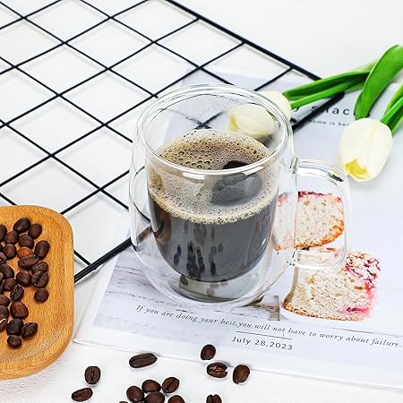 Home 2 Adet Çift Cidarlı İki Katmanlı Borosilikat Cam Bardak, Yalıtımlı Cappuccino Latte Kahve Kupası, Şık ve Dayanıklı Tasarım, Isıya Dayanıklı,Termisil Kupa (250 Ml)