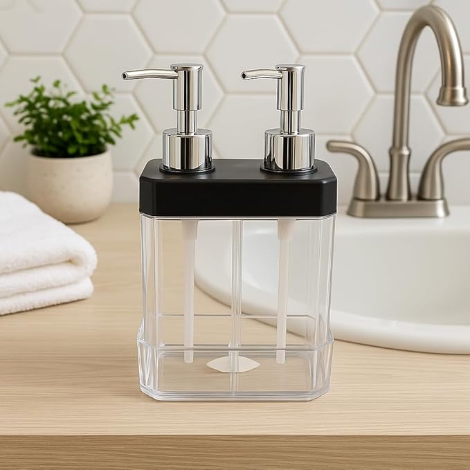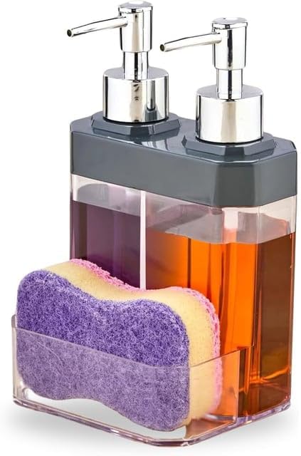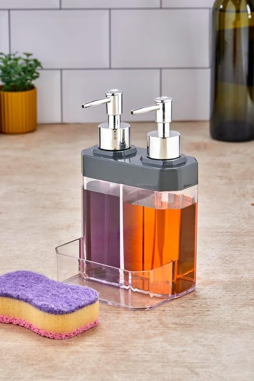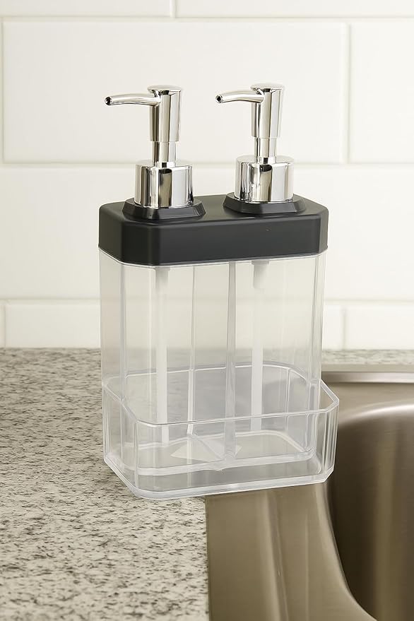 Home 2 Bölmeli Sıvı Sabunluk & Süngerlik – Bulaşık Deterjanı Ve El Sabunu İçin Çift Hazneli, Entegre Süngerlik Bölmeli, Tezgah Üstü Pratik Sabunluk Tezgah Düzenleyici (Siyah)
