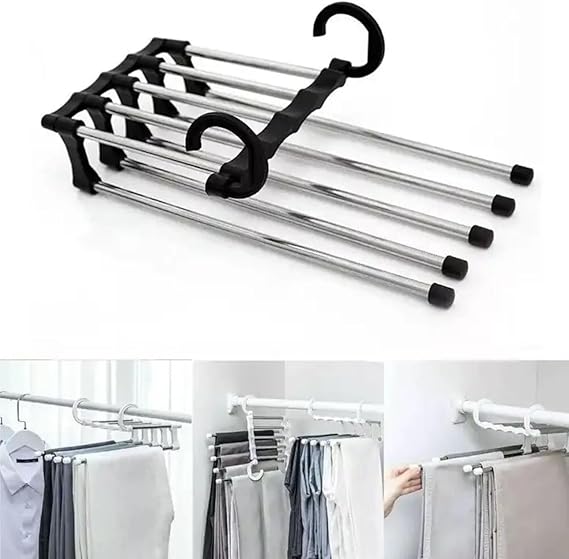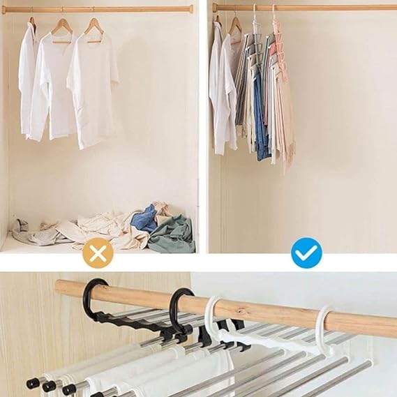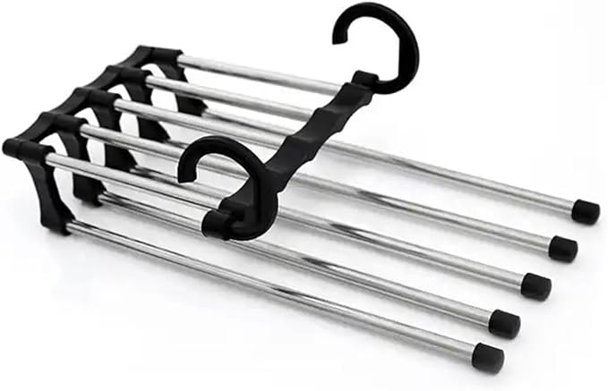 2 katlı tasarımı sayesinde, bir askıda 5 pantolonu saklayabilirsiniz, böylece gardırobunuzda daha fazla yer kazanabilirsiniz. Ayrıca, hareketli tasarımı sayesinde, pantolonlarınızı kolayca asabilir ve çıkartabilirsiniz.