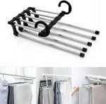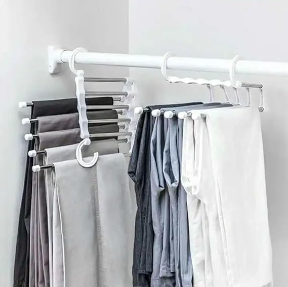 Pantolon Askılık 5’li Hareketli Askı, 2 Katlı Pratik Yer Kaplamayan Ütü Bozmayan Kot Kumaş Pantolon Askısı, kullanımı kolay ve pratik bir şekilde tasarlanmıştır.