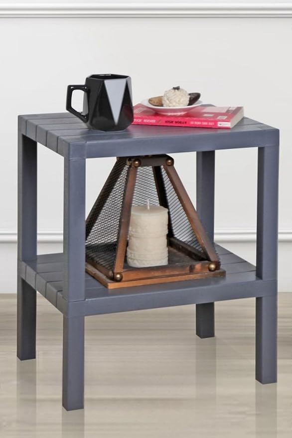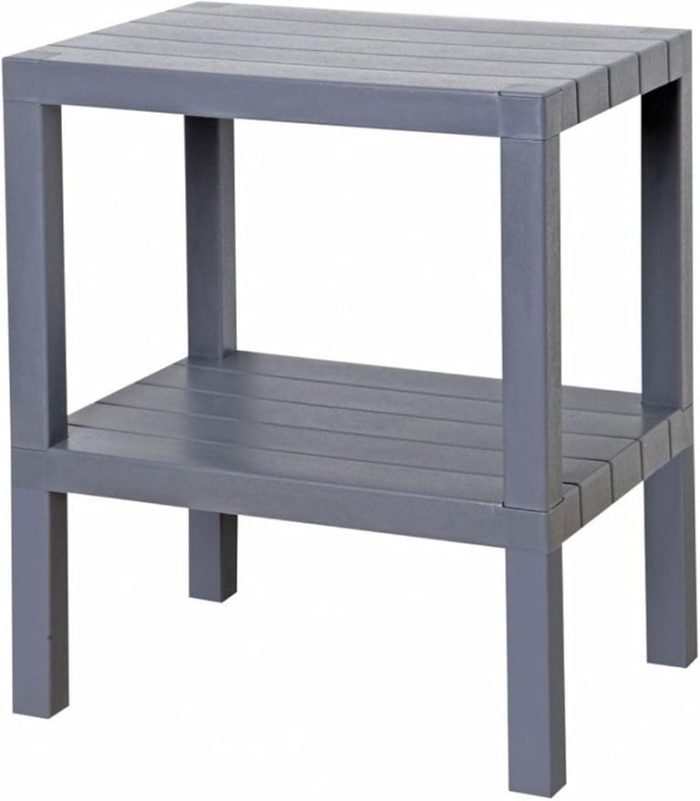 Home 2 Katlı Plastik Balkon Bahçe Sehpası Masası Şezlong Havuz Sehpası Gazetelik Banyo Mutfak Rafı Gri