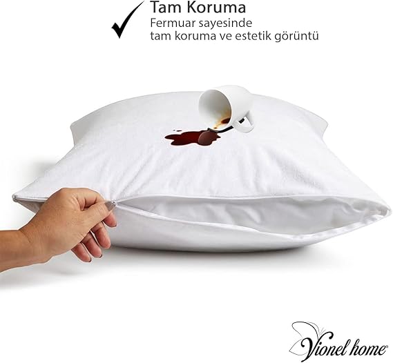 Home 2 Li Paket Pamuklu, Sıvı Geçirmez Yastık Koruyucu Alez, Havlu yüzey yastık alezi