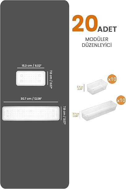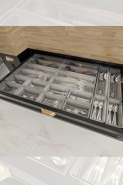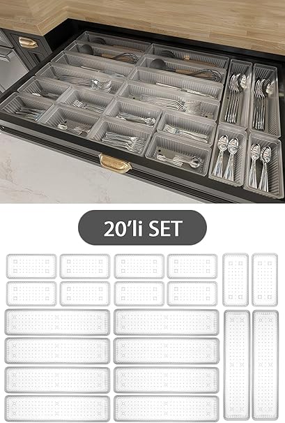 Home 20’li Modüler Set Kaşıklık Çekmece Içi Düzenleyici Çatal Kaşık Bıçak Düzenleme Organizeri Şeffaf
