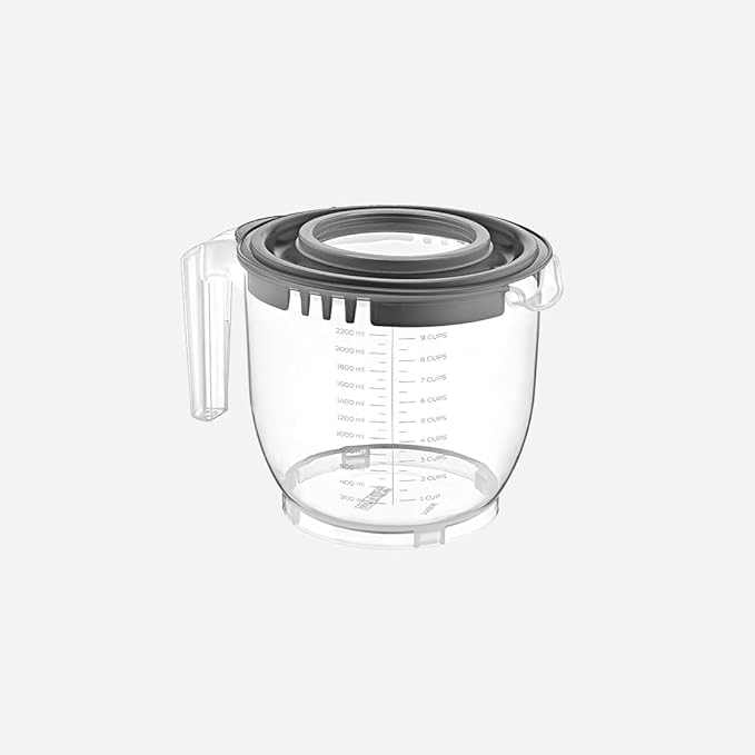 2200 ml Kapasite: Geniş hacim, büyük miktarlarda malzeme karıştırma imkanı sağlar.