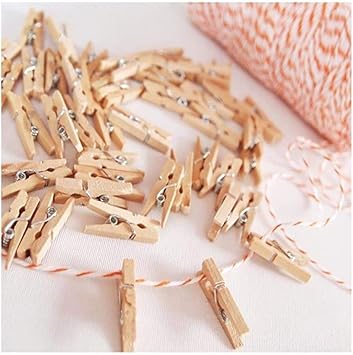 Home 24 Adet Mini Ahşap Not Mandalı,Not Tutucu Dekoratif Mandal Çalışma Odası Ev Ofis İçin Küçük Mandallar (Natural)