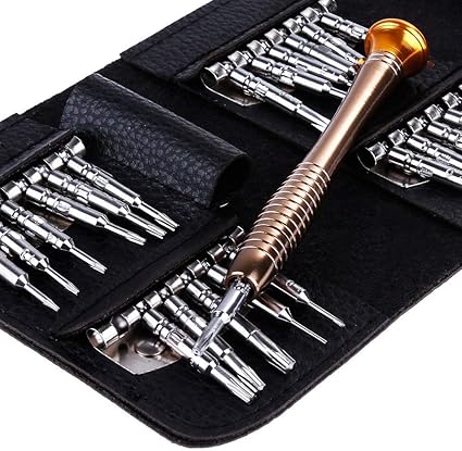 Home 25 Parça Hassas Tornavida Seti, Deri Çantalı, Krom-Vanadyum Çelik, PC/Laptop/Telefon/Gözlük Tamir Seti, Torx/Düz/Yıldız Uçlu