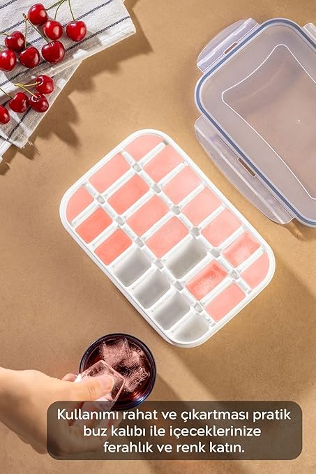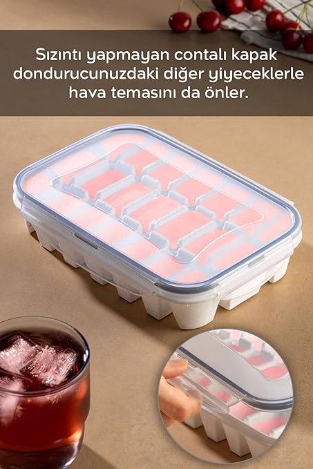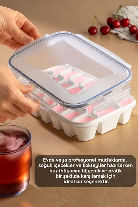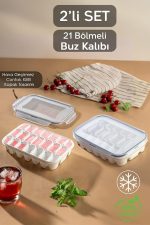 Home 2’li 21 Bölmeli Sızdırmaz Kilitli Buz Kalıbı Seti – Kapaklı Hava Geçirmez Buzluk – Vakumlu Buz Kabı