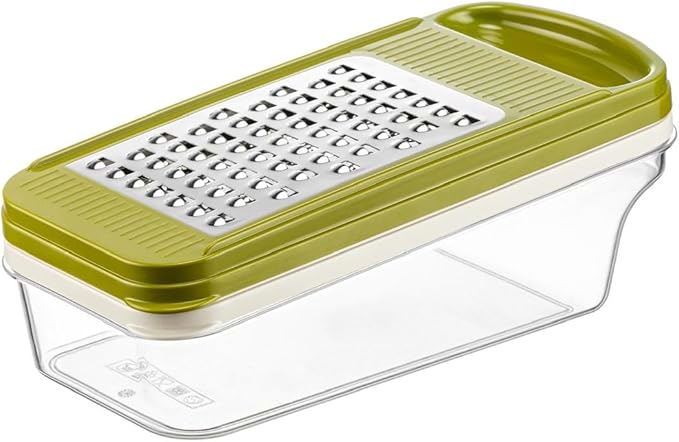 Home 3 Bıçaklı Yatay Rende, Rondo Rondoğrayıcı, Saklama Kabı Hazneli Kapaklı Plastik Rende, Çok Fonksiyonlu Mutfak Aleti, Sebze ve Meyveler için Etkili Doğrama ve Rendeleme