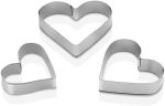 Çeşitli Boyutlar: Set, küçük, orta ve büyük olmak üzere üç farklı boyutta kalp kesiciden oluşur, böylece çeşitli boyutlarda kurabiyeler yapabilirsiniz.