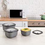 Home 3’lü MicroLine Saklama Kabı Seti, 600-1100-1800 ml, Hava Tahliye Kapağı ile Mikrodalgada Kapağı Kapalı Isıtma, Vakumlu, Sızdırmaz, BPA Free, Silikon Kapaklı,Gıda Saklama PP (Krem)