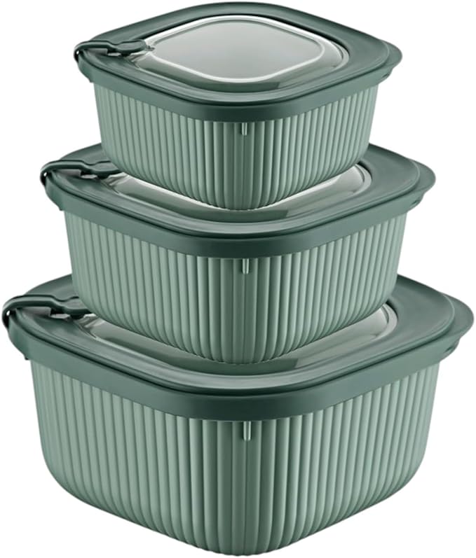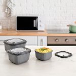 Home 3’lü MicroLine Saklama Kabı Seti, 600-1100-1800 ml, Hava Tahliye Kapağı ile Mikrodalgada Kapağı Kapalı Isıtma, Vakumlu, Sızdırmaz, BPA Free, Silikon Kapaklı,Gıda Saklama PP (Yeşil)