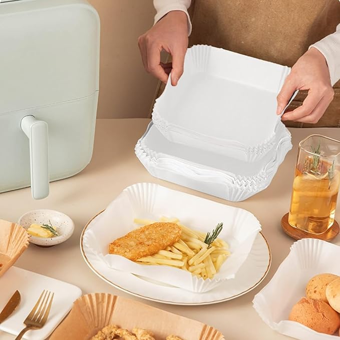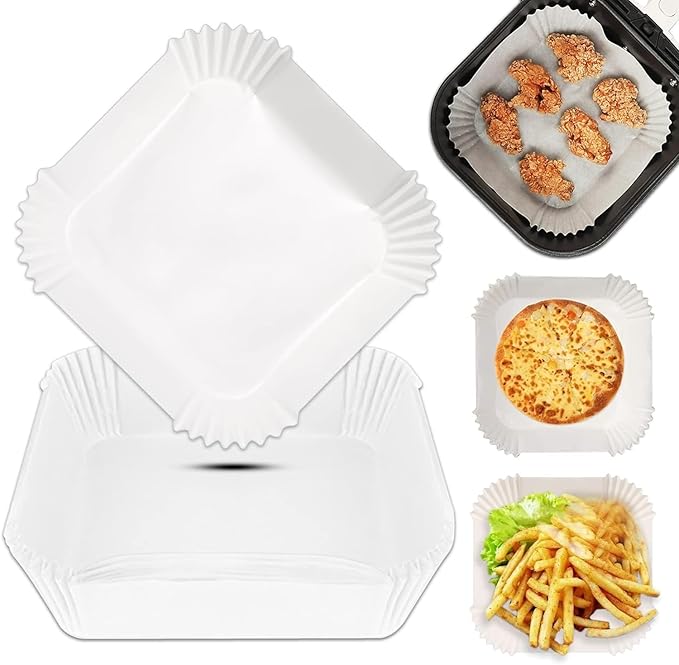 Home Airfryer Pişirme Kağıdı, Fritöz Yağlı Kağıdı, Yanmaz Kağıt 100 Adet Sıcak Hava Fritözleri İçin Yağlı Kağıt,Yağa Ve Suya Dayanıklı Pişirme Kağıdı (100 Adet)