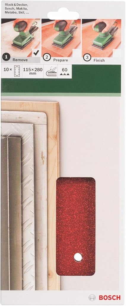 Home and Garden Bosch zımpara kağıdı (farklı malzemeler için, 10 adet, 115 x 280 mm, granülasyon 60)