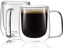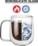 Home Borosilikat 2 Adet Çift Cidarlı Kupa Bardak, 250 Ml Kulplu Cam Çay Kahve Süt Kupa Borosilikat Bardak
