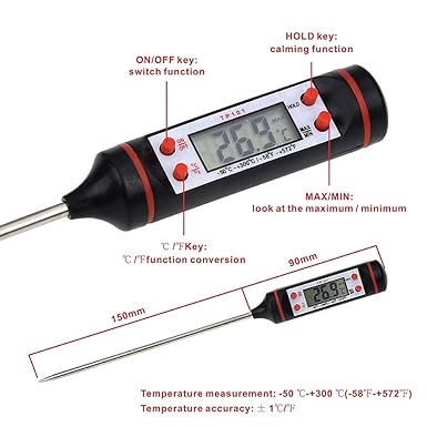 Dijital Sıcaklık Ölçer | Geniş Sıcaklık Ölçüm Aralığı, -50 ila 300 Derece arasında çalışır. 0,1 Derece hassasiyeti, 1 Derece hata payı