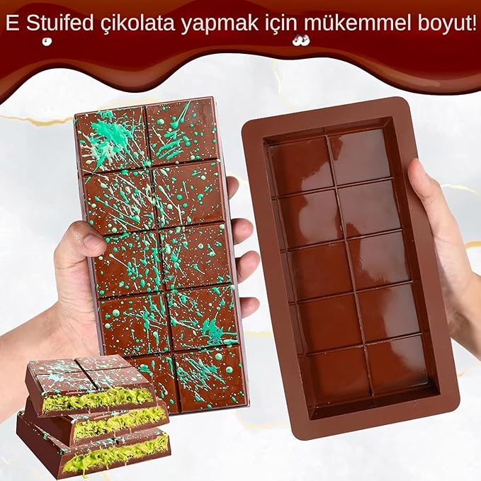 Home Dubai Çikolatası Kalıbı, Silikon Çikolata Kalıbı, Kadayıflı ve Çıtır Çikolatalar için Kolay Çıkarma Kalıp, Esnek ve Dayanıklı Mutfak Aksesuarı (2 Adet)