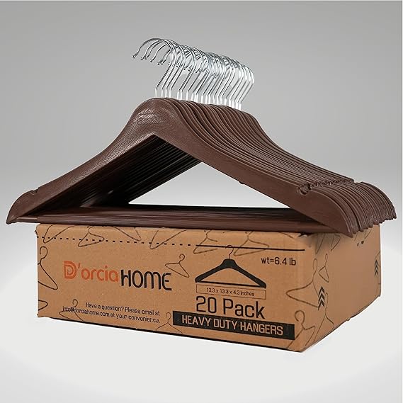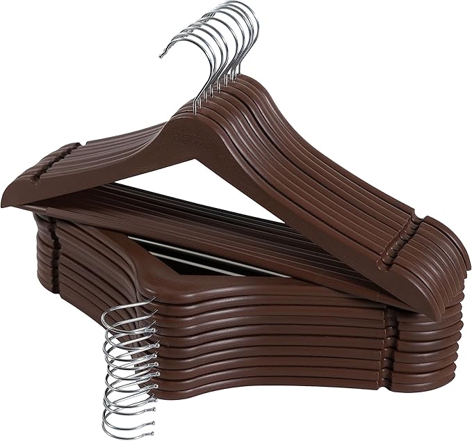 Home Elbise Askısı – Ağır Hizmet Dayanıklı Ceket ve Elbise Askısı – 20’li Paket Elbise Askısı Plastik – Kaymaz Elbise Askıları – Ahşap Görünümlü Yer Tasarruflu Askılar – 360 Derece Döner Kanca