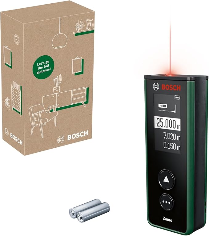 Home & Garden Zamo Lazerli Uzaklık Ölçer (25m Çalışma Alanı, 4 sn. Ölçme Süresi, 2 x AA Pil, Karton Kutu)
