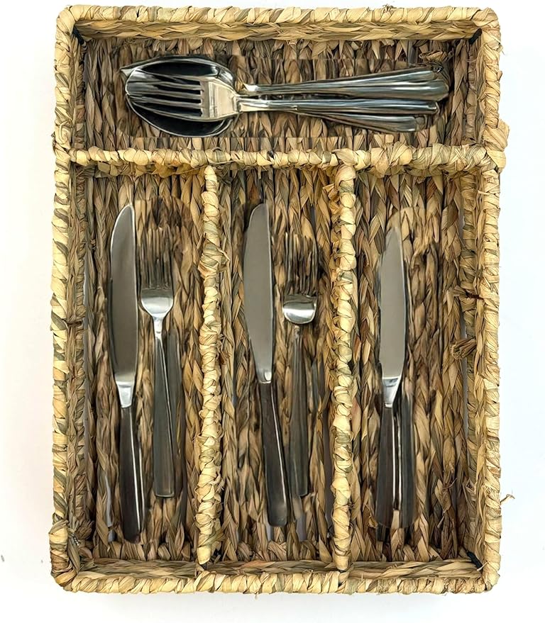 Home Hasır Örgülü 5 Gözlü Kaşıklık – Çekmece İçi Kaşık, Çatal, Bıçak Düzenleyici Organizer, Doğal Hasır El Yapımı Mutfak Gereçleri Saklama Ünitesi, Estetik ve Fonksiyonel Tasarım (Hasır Örgü)