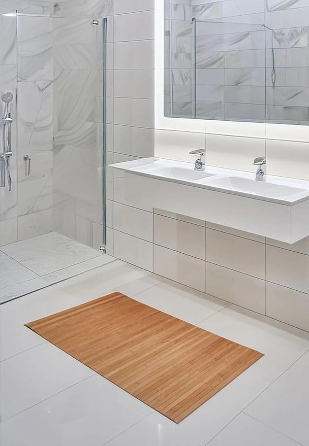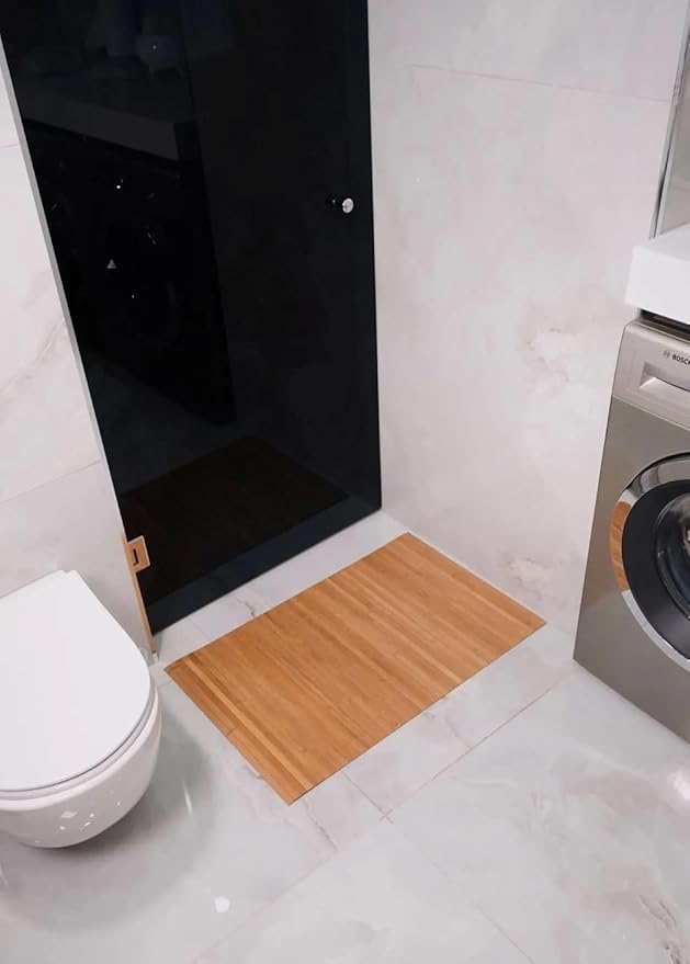 Home Kaydırmaz Tabanlı Bambu Banyo Paspası – 70×45 cm Doğal Ahşap Bambu Mat, Suya Dayanıklı, Kaymaz Paspas, Dekoratif ve Hijyenik Zemin Kaplama