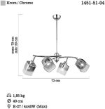 HOME MANIA, Lucea Derma, 4 X E27 Duy, Metal, Cam, 33 X 18 X 62 Cm, 1451-51-04, 4’lü, Krom Renkler