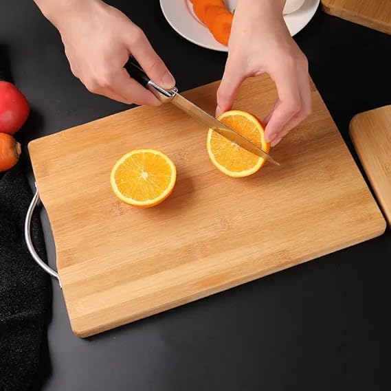 Home Metal Saplı Bambu Kesme Tahtası, Ahşap Kesim Panosu, Et, Balık, Sebze ve Ekmek için Çok Yönlü Kesim Tahtası, Doğrama Tahtası Bambu (1, 32×22 Cm)