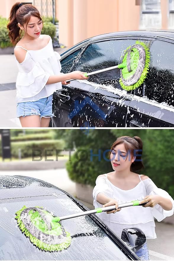 Home Mikrofiber 2 In 1 Teleskopik Saplı, Çizmez Araba Oto Yıkama Temizleme Fırçası Mopu – Yedek Bezli