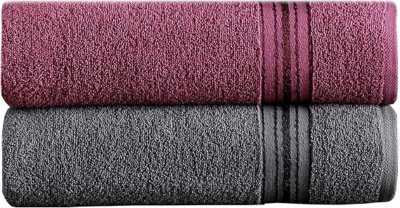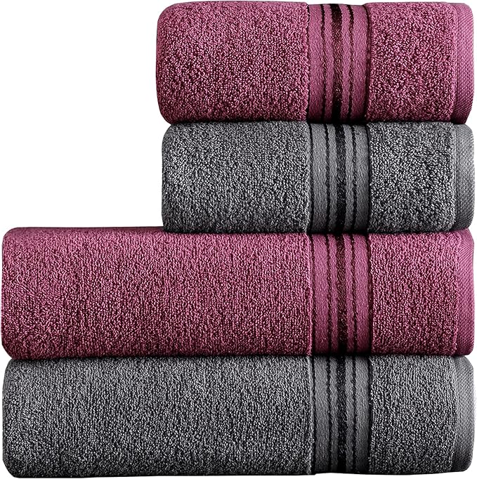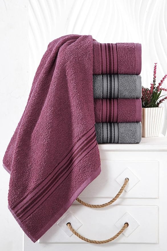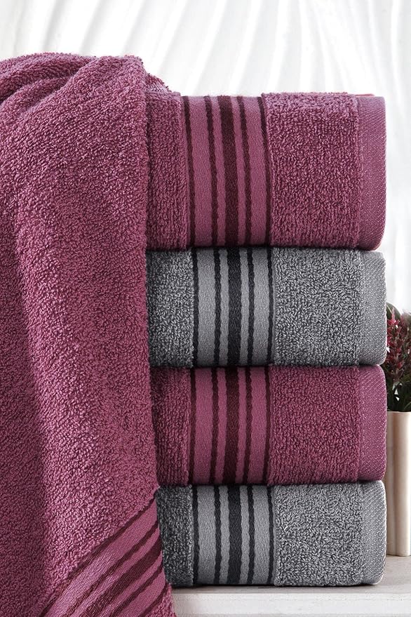 Home Molly Çift Renk Banyo Havlusu, 4’lü Paket 2 Parça (70×135),2 Parça (50×85) Yumuşak ve Emici, Kaliteli Günlük Kullanıma Uygun %100 Pamuk Havlu(Mürdüm-Gri)