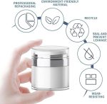 ✈ ✍ ✍ [Yeniden kullanılabilir] Krem kavanoz vakum şişesi, kolay taşıma için taşınabilir bir boyuta sahiptir, kolay doldurma ve temizlik, atıkları en aza indirir, artık sıkma tüpleri ve cilt bakım ürünlerinde parmak yok.