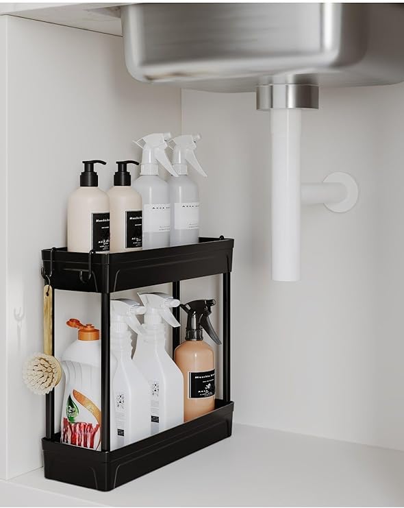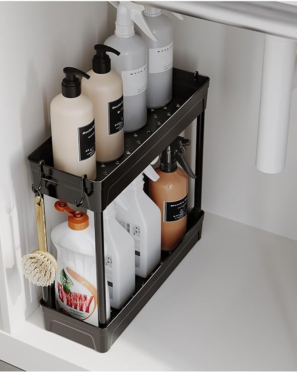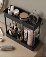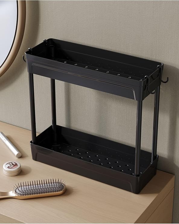 HOME Rafata Makyaj,Takı Ve Bakım Ürünleri Organizeri Rafı Standı Iki Katlı Askılı Kozmetik Düzenleyici, Siyah
