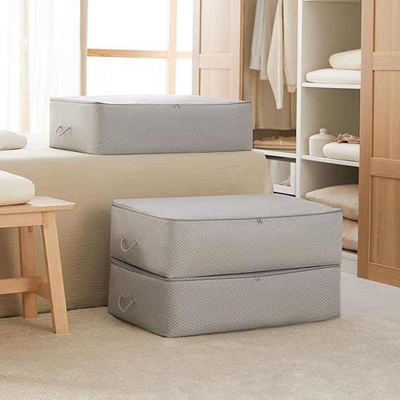 Home Textile 3’lü Mega Boy Gri Balıksırtı Baza Altı Hurç Set 74 x 46 x 22 cm