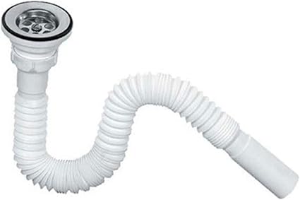 Home Yüksek Kaliteli Çelik Süzgeçli Lavabo Gider Hortumu,Pratik Körüklü Sifon,Uzun Eviye Gider Borusu (150Cm)