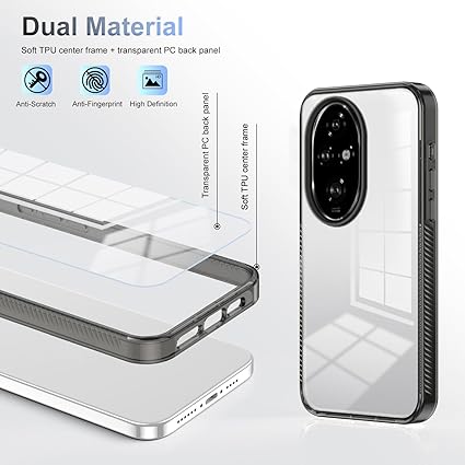 Honor 200 Pro için Şeffaf Kılıf, Kristal Netliğinde Sararma Önleyici Askeri Darbeye Dayanıklı Çizilmez Sağlam Arka Kapak Tampon Sert Kılıf – Siyah