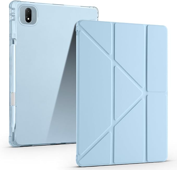 Honor MagicPad 2 ile Uyumlu Kılıf Tri Folding Silikon Kalem Bölmeli Katlanabilir Standlı PU Deri Yumuşak Kapak, Tablet Kılıfı [Akıllı Kapak, Uyku Modlu] – Mavi