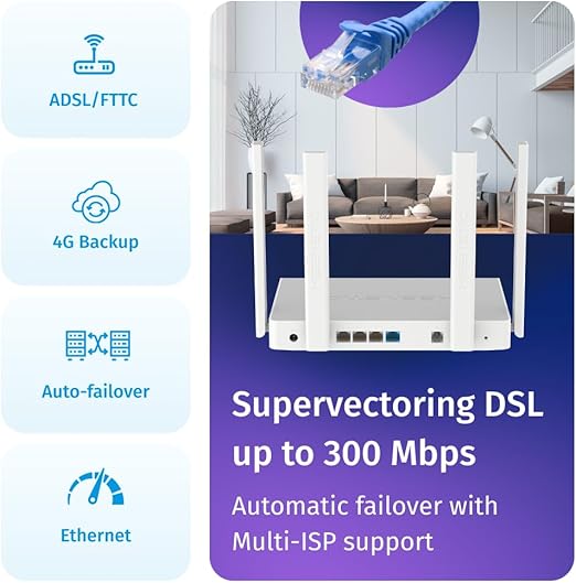 Hopper DSL AX1800 Mesh Wi-Fi 6 VDSL2/ADSL2+ Modem Fiber Router 4x1Gbit/s, USB3.0 KN-3610