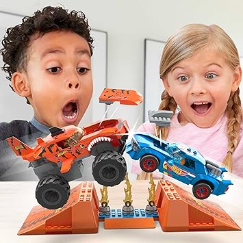 Hayranların çok sevdiği modelden ilham alan, 226 parçalı MEGA Hot Wheels Smash N Crash Tiger Shark Çarpışma Pisti yapı seti