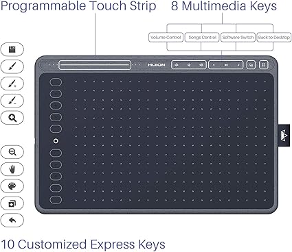 İş akışınızı optimize edin: 10 yanıt veren kısayol tuşu ve gerektiği gibi programlanabilen 1 dokunmatik şerit ile HS611 iş akışınızı basitleştirir ve fikirler daha hızlı ve verimli bir şekilde oluşturmanıza yardımcı olur. Ayrıca TypeC’den USB’ye bağlantıyı destekler, hem sağ hem de solak kullanıcılar için rahat hale getirir. Windows7 veya sonrası, macOS 10.12 veya üstü ile uyumludur ve Huion Sketch, Illustrator, Photoshop, SAI, Mediband vb. gibi çoğu yaratıcı yazılımla çalışır!