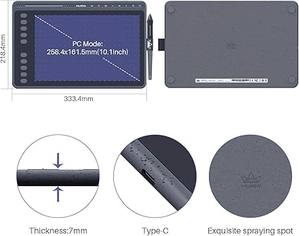 Püskürtme Noktalı Şık ve İnce Tasarım: Piyasadaki tamamen siyah çizim tabletleriyle karşılaştırıldığında, Huion HS611, enfes püskürtme noktasını 7 mm ultra ince uzay gri kasaya yaratıcı bir şekilde harmanlar, bu da onu bireysel ve modern bir görünüme kavuşturur. 10,2 x 6,1 inç çalışma alanına sahip olan bu ürün kreasyonunuz için en geniş tuvali sunar.