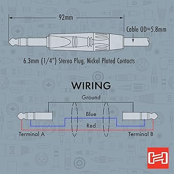 HSS-005 REAN 1/4″ TRS – REAN 1/4″ TRS Pro Dengeli Ara Bağlantı, 5 Metre
