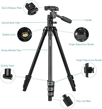 HT-T02 Profesyonel Tripod 154 Cm Yatay Kullanım Çok Fonksiyonlu Panoramik Kafa 360 Derece Dönebilir