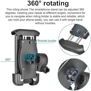 HT-T45 Motor ve Bisiklet Gidonu İçin 360 Dönebilen Telefon Tutucu Bisiklet telefon askısı, kaymaz silikon pedlere, sabit destek rafına ve daha güvenli bisiklet sağlamak için cep telefonunuz için geliştirilmiş kemere sahiptir. Bu bisiklet telefon tutucu, 4.5 “ve 6.5″ arasında ekranlı telefonlar içindir.