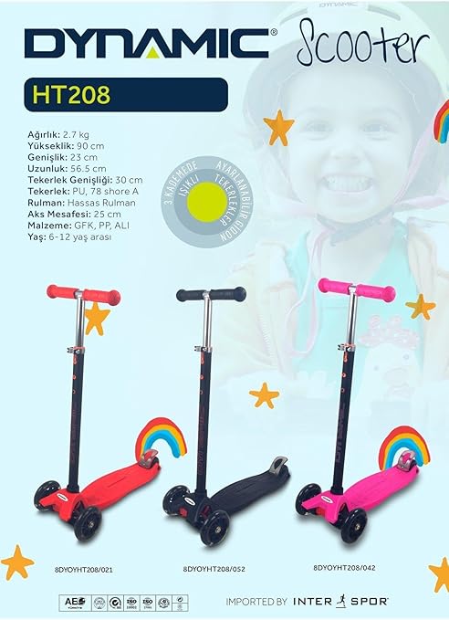 HT208 3 Tekerlekli Yeni Nesil Scooter – Işıklı Tekerlekli – Arkadan Frenli