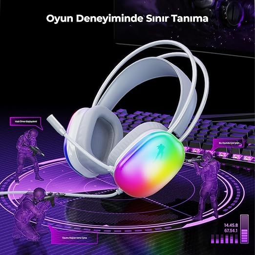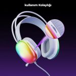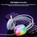 HT409 USB Kablolu RGB LED Aydınlatmalı Mikrofonlu Kulak Üstü Gaming Kulaklık Beyaz (Beyaz)