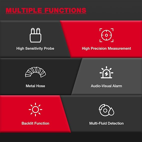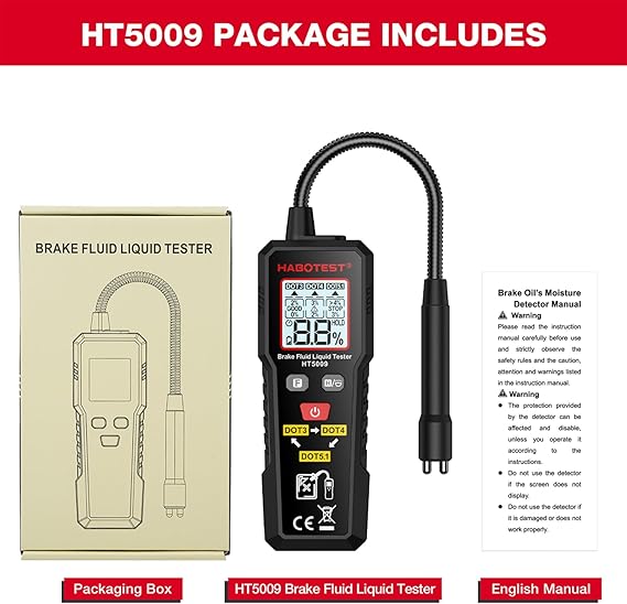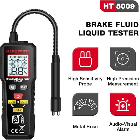 ▶️Çift Alarm Sistemi: Hem görsel hem de dijital alarmlar, fren hidroliğindeki su içeriğini gösterir. Sıvı kabul edilebilir sınırlar içinde olduğunda veya bu sınırları aştığında uyarı vermek için farklı renklerde arka ışık ve bip sesi duyulur.