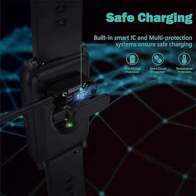 【Güvenli Şarj】 Bu Şarj Kablosu, güç kaynağına bağlandığında cihazınızın aşırı akımdan zarar görmesini önlemek için Voltaj Regülatörü ve PTC İçerisine sahiptir. Aşırı voltaj ve aşırı akım korumasından yapılmışlardır, şarj olurken saatinizin hasar görmesini engellerler