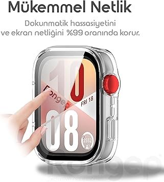 MÜKEMMEL UYUM➤ Watch Fit 4 ekran koruyucu kılıf, cihazınızla tam uyum sağlayarak ekranın tüm işlevlerini sorunsuzca kullanmanıza olanak tanır. Fit 4 koruma özelliği sayesinde şarj girişine ve sensörlere erişimi engellemeden koruma sağlar. Kolay takılıp çıkarılabilen yapısıyla fit 4 aksesuarları arasında pratik ve koruyucu bir seçenek sunar.