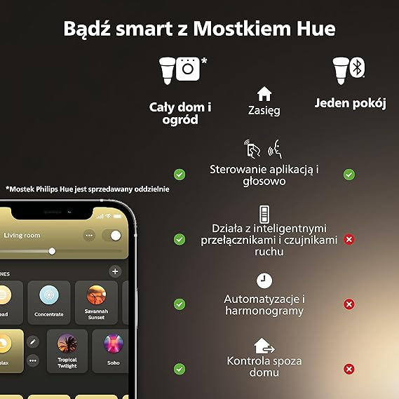 Bu ürün, tam akıllı kontrolün ve özelliklerin kilidinin açılması için Hue Bridge ile bağlantı kurulmasını gerektirir. Philips Hue uygulamasını kullanarak ışıklarınızı kontrol edin, zamanlayıcılar, rutinler ayarlayın, ışık ekleyin kaldırın vb. *Hue Bridge ayrı olarak satılır